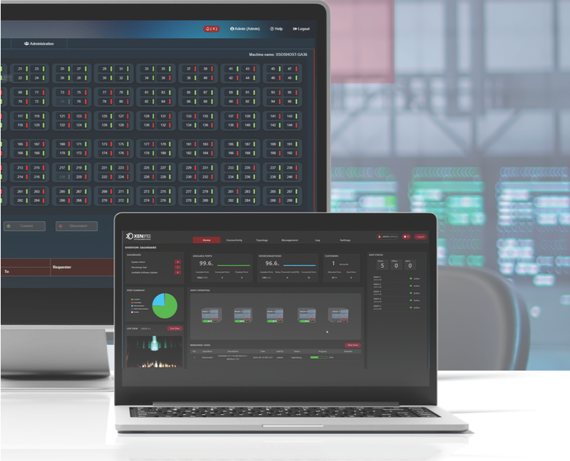 XENOptics bundles a web‑based Network Management System (NMS) and Element Management System (EMS) that give operators drag‑and‑drop topology control: